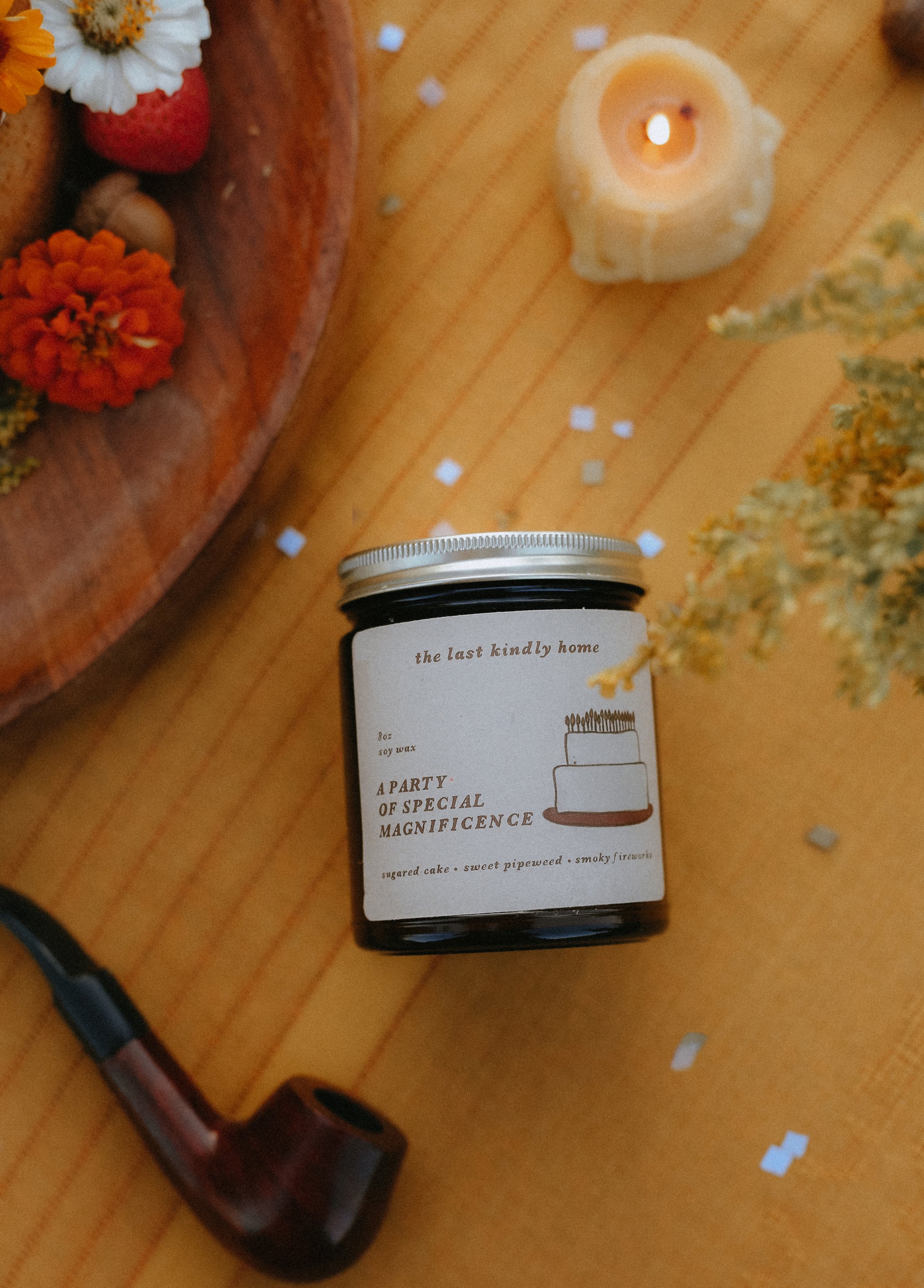 a candle for an evening around the party tree with thick slices of frosted cake passed around and pipeweed and fireworks still lingering in the air.