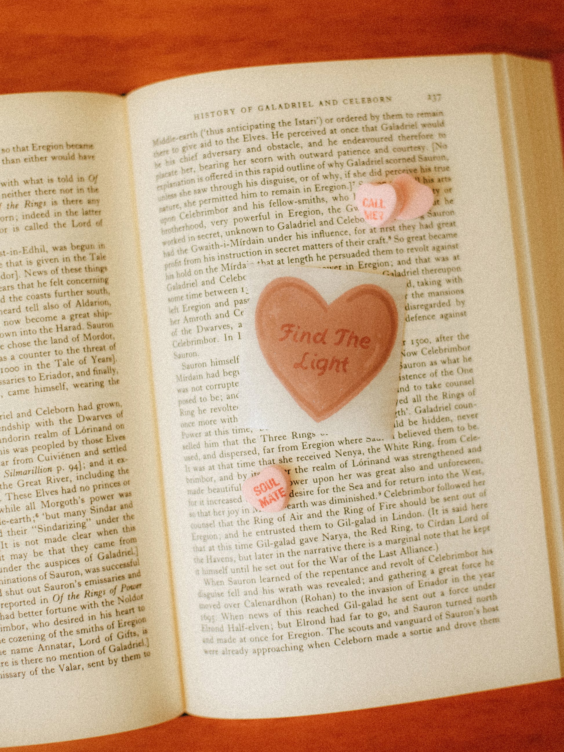 a little twist on the classic candy hearts design: but this time it's all about sauron and galadriel. represent your love for the duo with this clear, heart shaped sticker.