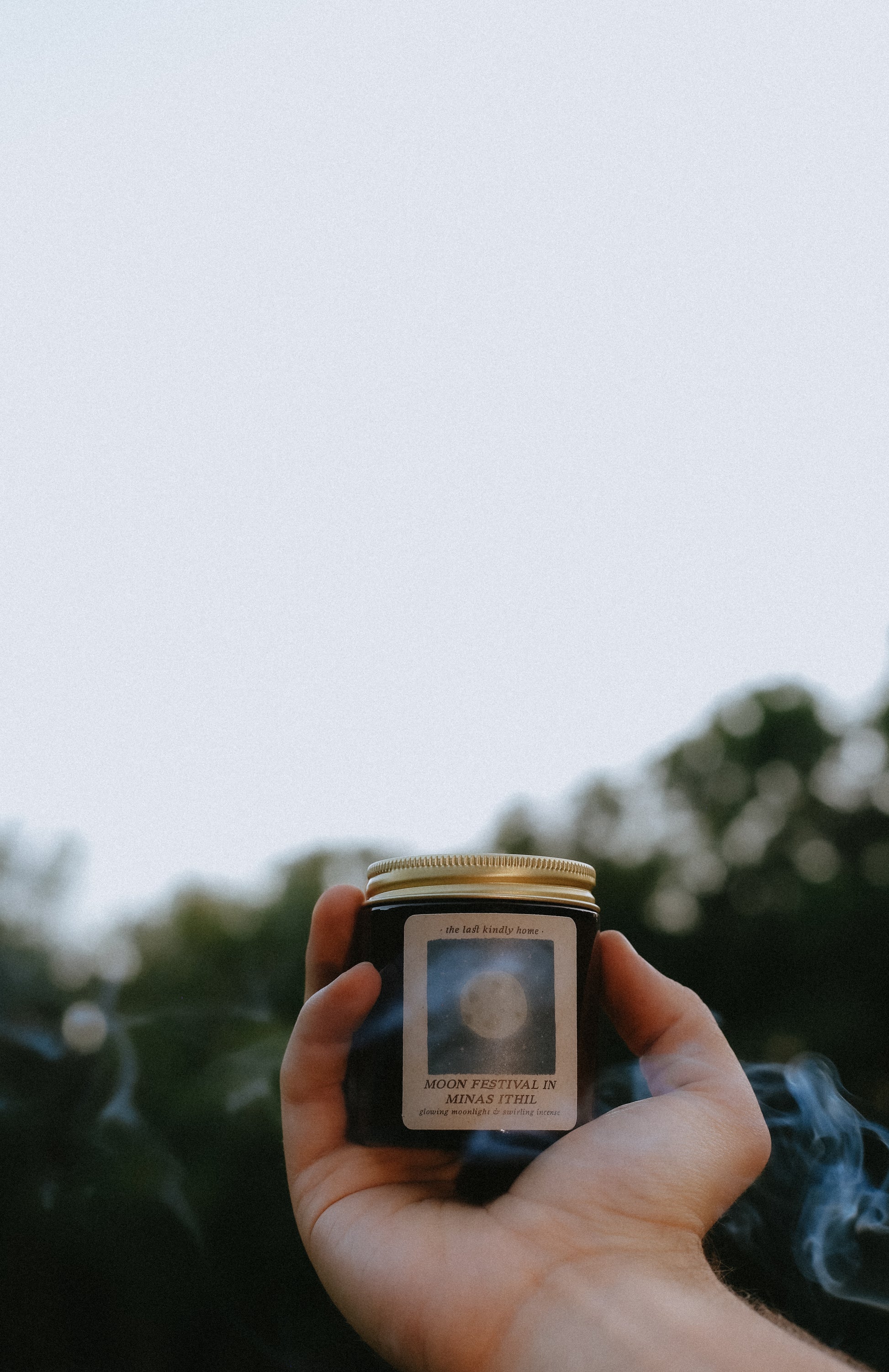 this 4oz candle comes in a beautiful amber jar with a gold lid. the label is printed on kraft paper for a vintage vibe. the scent profile of this candle features notes of nag champa, patchouli, incense, citrus, juniper, cedarwood, and black violet.
