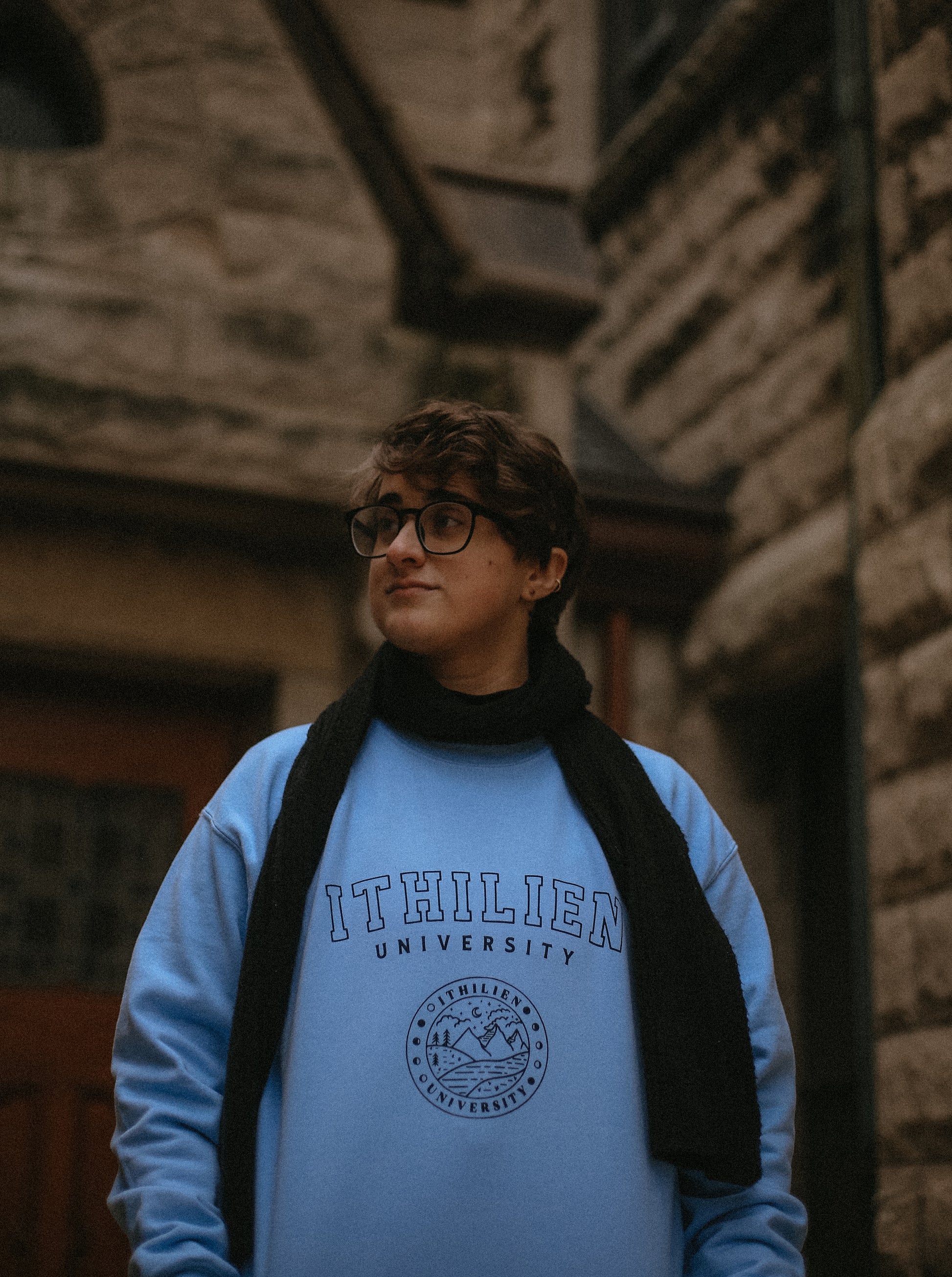 sweatshirt is being modeled by fara míre, folklore and mythology major at ithilien university.
