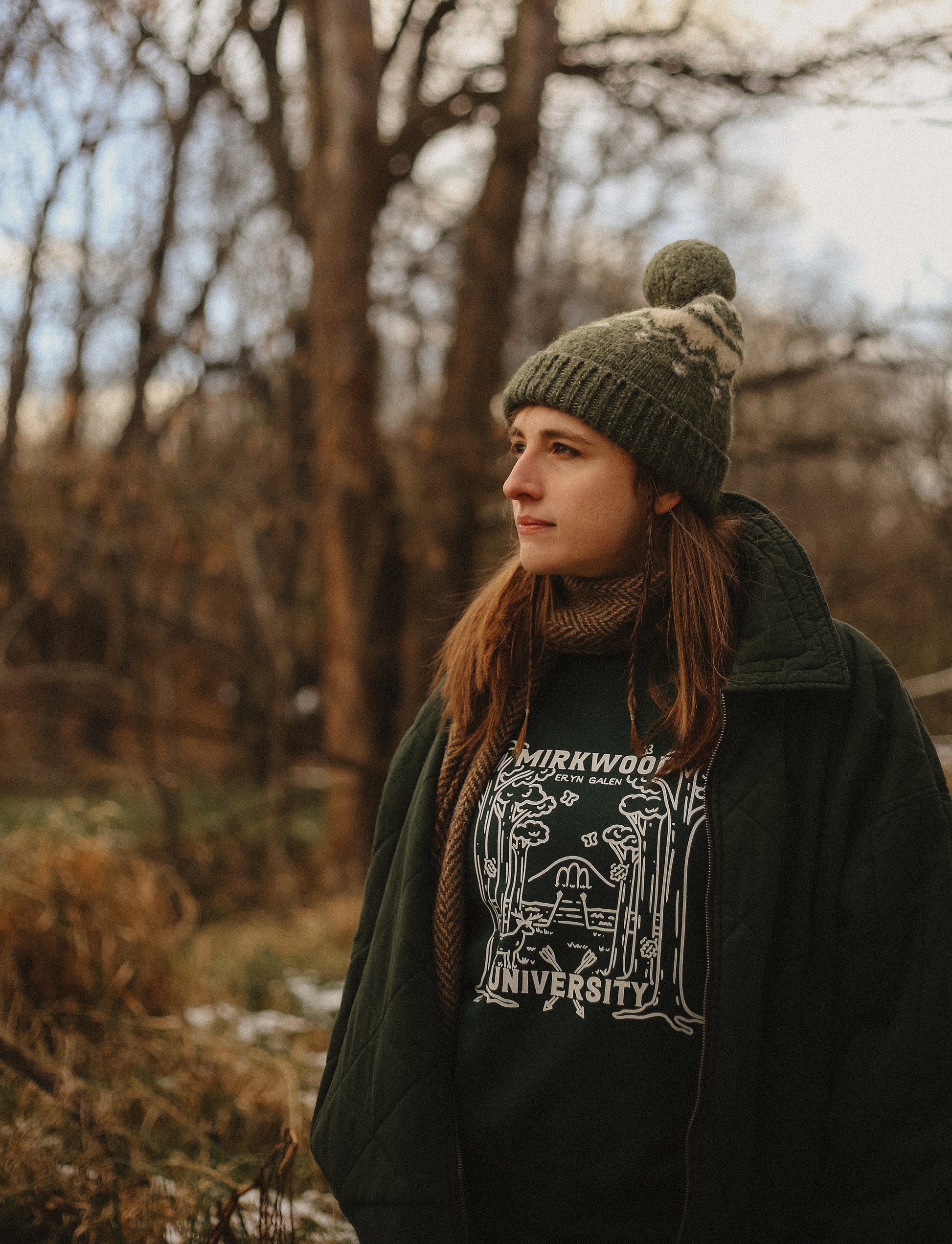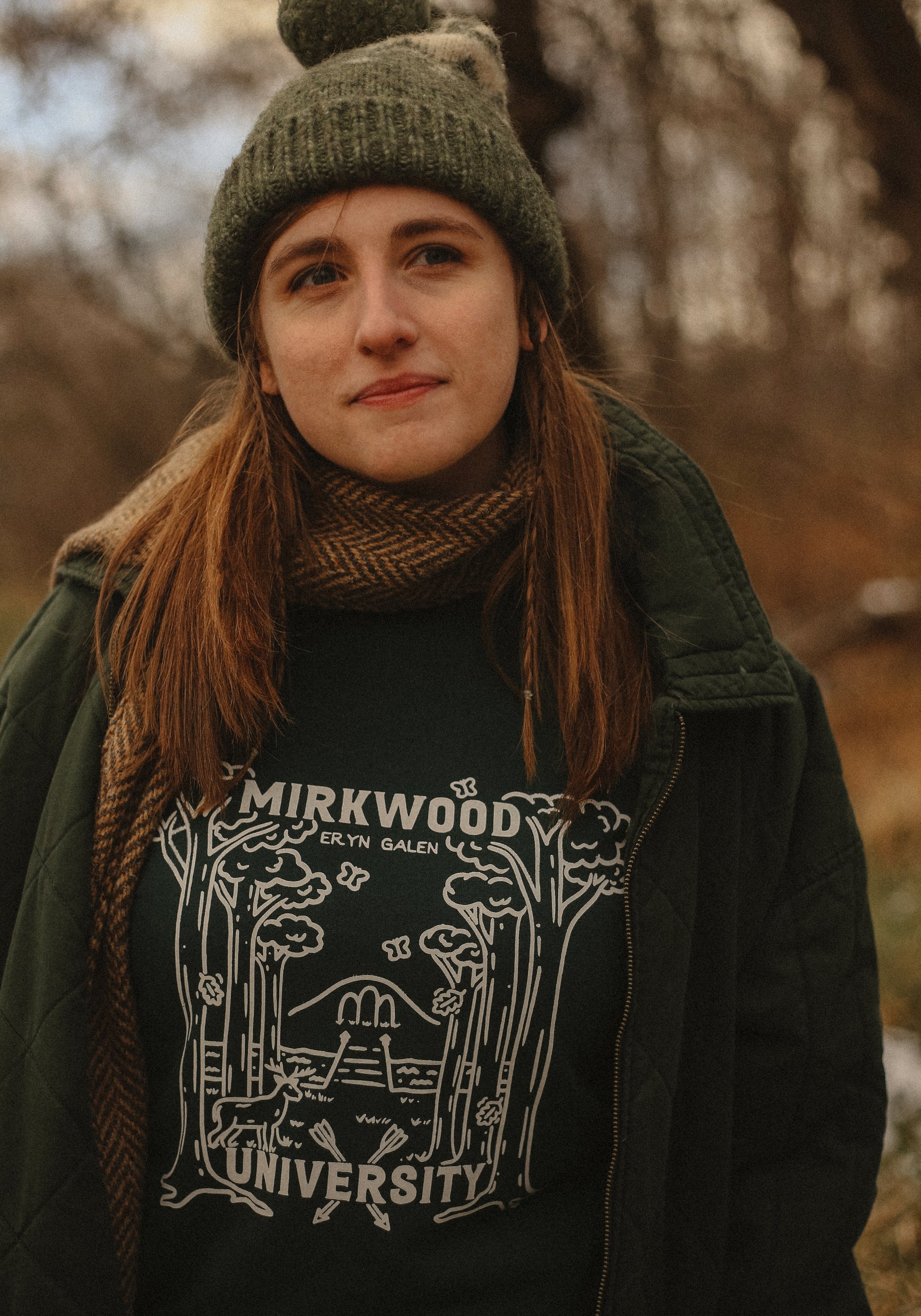 sweatshirt is being modeled by leander green, environmental science major at mirkwood u.