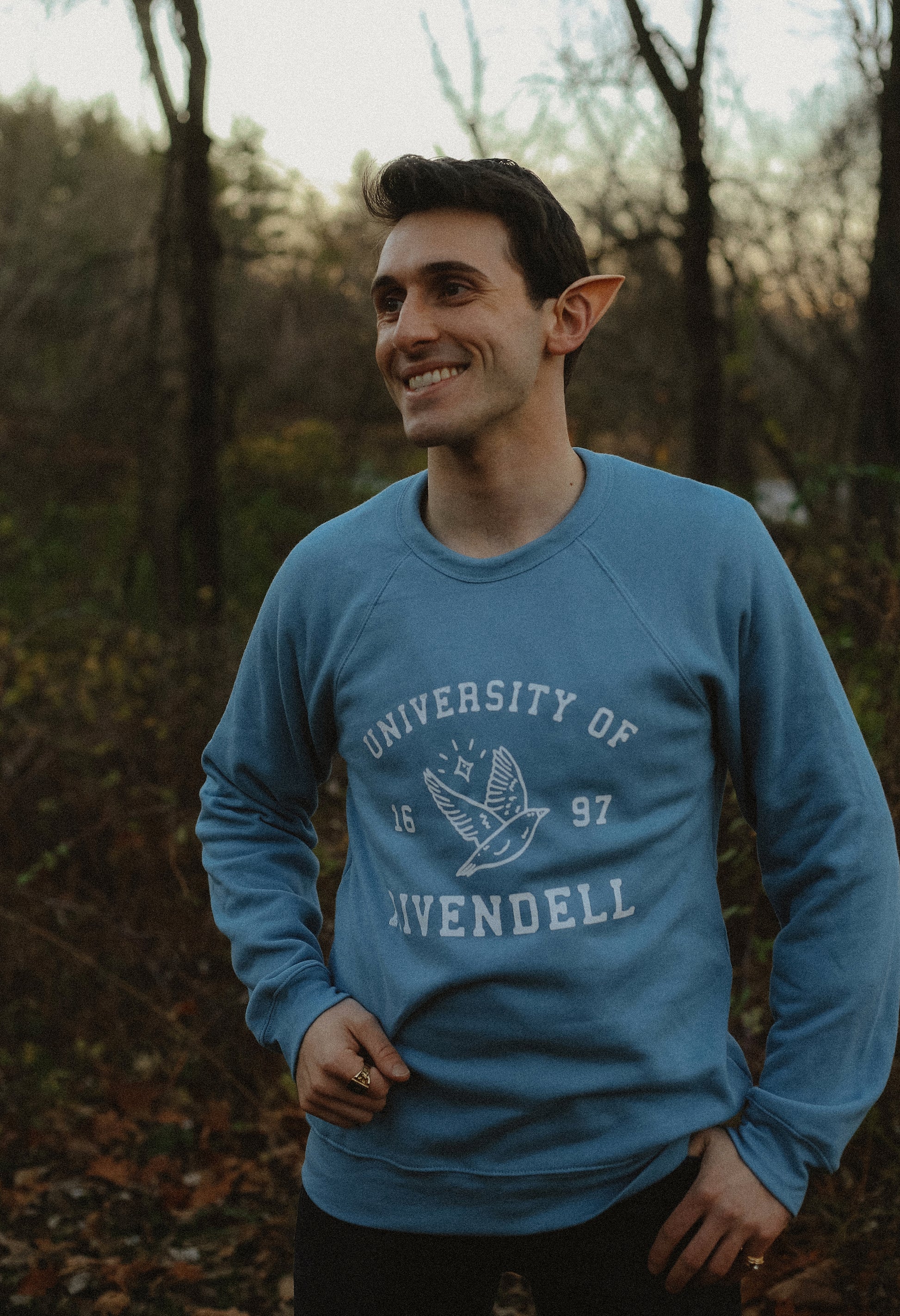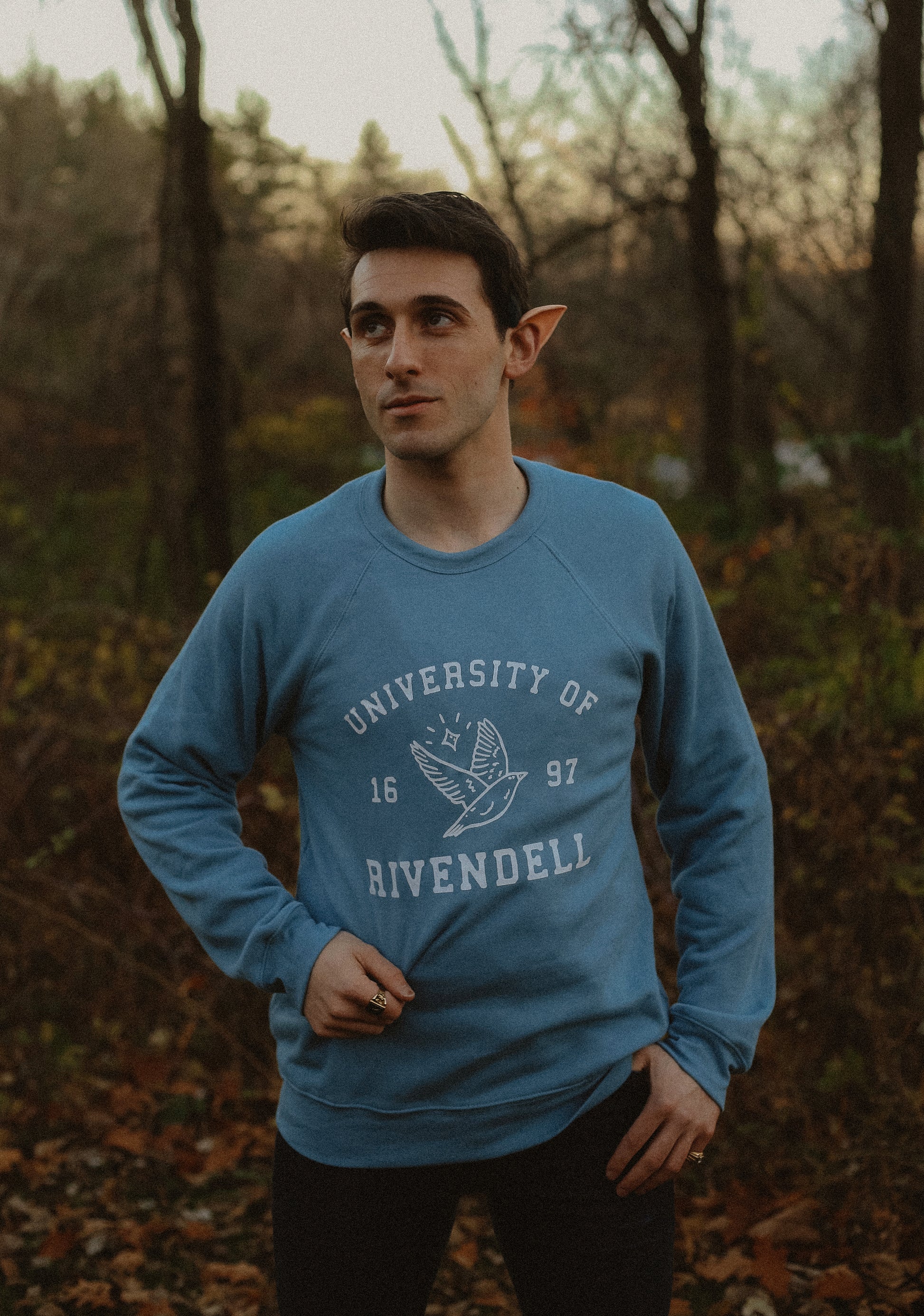 (PRE-ORDER) university of rivendell mascot sweatshirt/hoodie in waterfall blue