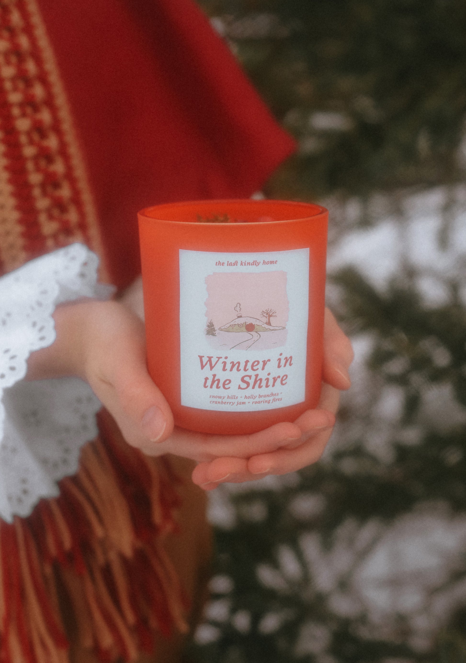 a rare snowy shire day is captured in candle form with this candle. smell the faint softness of snow in the air, green holly branches and a bit of tart cranberry jam on scones while you enjoy the warmth of the fireside.